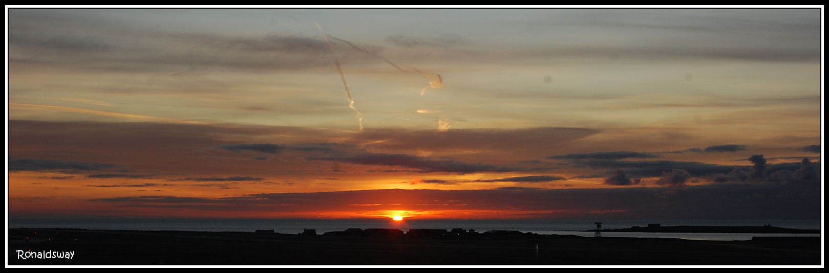 The Sun peeks over the Irish Sea, viewed from the control tower at Ronaldsway